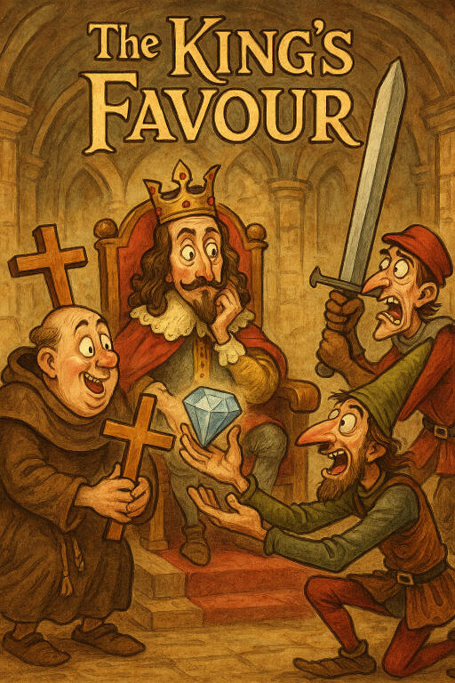 Simple moves. Deep timing. Delicious reversals.While The King’s Favour is a fictional and humorous card game, it draws loose inspiration from the turbulent courts of late medieval and early modern Europe.